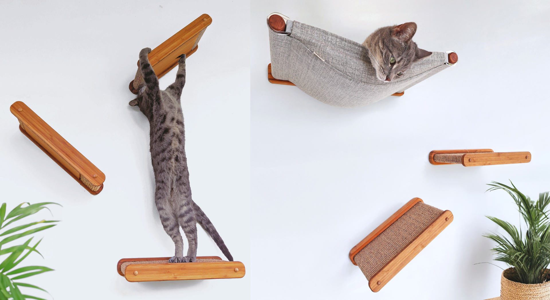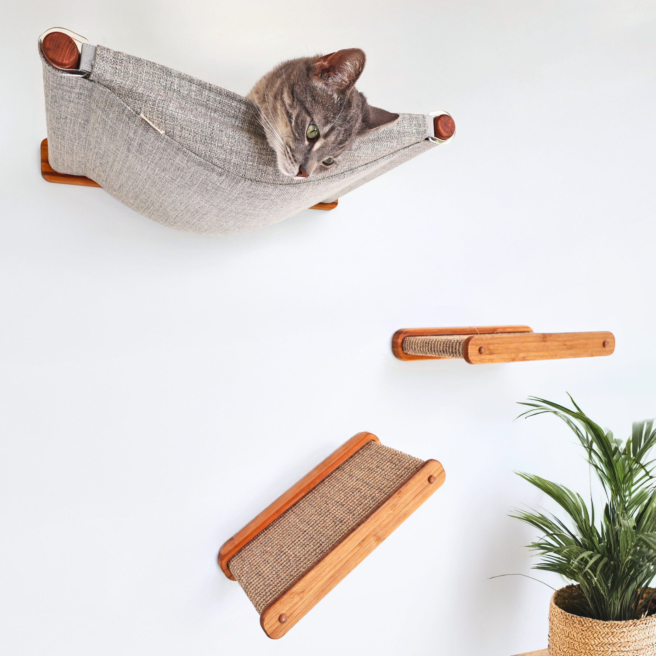 “I love this set from Purrch, it allows our cats a cozy space up & away from the dog! What really attracted me to it was the quality of the designs and materials. It’s a very appealing set-up to hang in a nice space, and looks much better than a cat tower.”